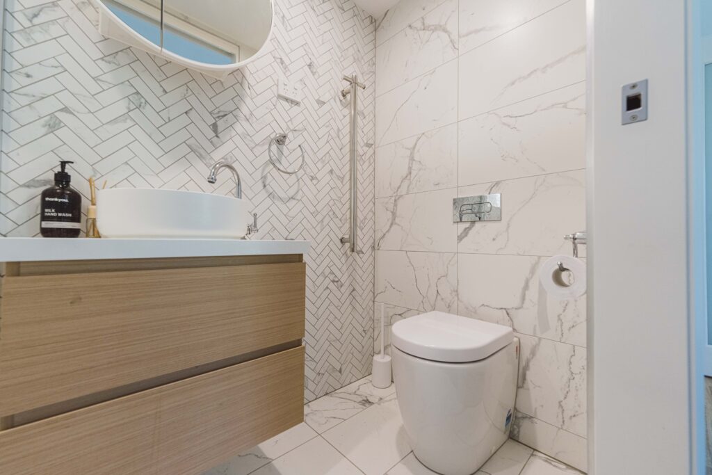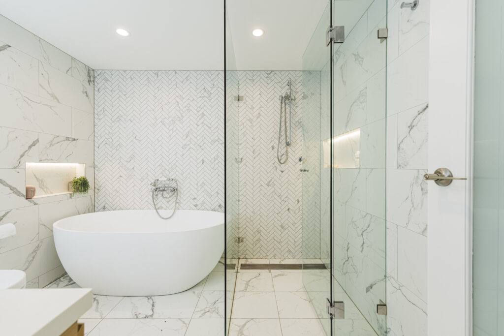 Hotel-inspired bathrooms with premium finishes, waterproofing and custom tile work.